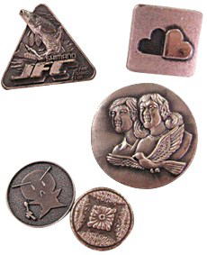 真鍮、丹銅材をプレスにより凹凸をつけ、イブシ仕上げ(一旦薬品で黒染めし、磨く加減で凹凸をはっきりさせる方法)を施した製品。